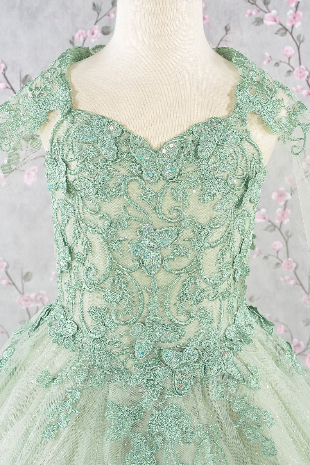 3D Butterfly Applique w/ Detachable Side Mesh Layer Quinceanera Dress GLGL3167