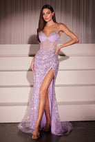 Lavender Sequin Corset Gown with Sheer Bodice and High Slit CDC162
