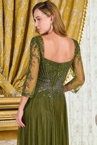 Charming A-Line Beaded Gown w/ 3/4 Sleeves & Dazzling Sequins Embroidery GLGL3787