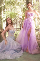 This glamorous ball gown features a strapless sweetheart neckline and an intricately embellished bodice, bringing a touch of sparkle to your special occasion. The asymmetrical A-line skirt, crafted from layered tulle, flows elegantly with a daring slit, while the short underskirt adds volume for a dramatic effect. Perfect for prom or formal events, the structured bodice with a lace-up corset back ensures a flattering, customized fit.