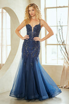 Sleeveless Elegant Festive Gown w/ Floral Lace Applique & Open Lace Up Back AC2120