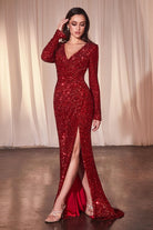 This exquisite sheath prom gown dazzles with intricate sequin embellishments that catch the light with every movement. Its timeless V-neckline and long sleeves create an elegant silhouette, while the sophisticated leg slit adds a touch of allure and freedom to the skirt. Perfect for special occasions, this dress combines refined glamour with modern style, ensuring you stand out gracefully at any event. Crafted to flatter your figure, it offers both comfort and sophistication for a memorable evening.