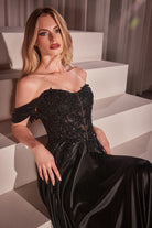 Off-Shoulder Embroidered Satin Ball Gown with Corset Bodice CDS525