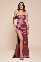 ONE SHOULDER SATIN CORSET GOWN CD7448