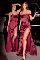 Fashion-Forward Solid Soft Satin Evening Dress w/ Boned Bodice & Daring Leg Slit CD 7492