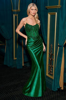 Strapless Sequin Corset Gown with Satin Skirt and High Slit CDCC475