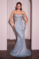 Discover timeless sophistication with this strapless silver embellished gown that draws admiring looks wherever you go. Its sweetheart neckline elegantly highlights your décolletage, while the sleek mermaid cut beautifully enhances your natural shape. Subtle beading on the bodice sparkles with every step, and the sheer side panels add a touch of modern sensuality. A lace-up back ensures a perfect, secure fit, letting you enjoy your evening with confidence. Ideal for unforgettable moments when you want to make a lasting impression.
