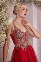 Layered Tulle A-Ling Illusion V-neck Straps Embroidered Bodice Long Prom Dress
