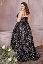 Plus Size Sequin Floral V-neckline Strap with Open Back Long Prom & Bridesmaid Dress