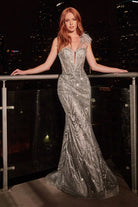 Beaded Corset Gown with Feathers – Sheer Illusion Formal Dress CDCB087