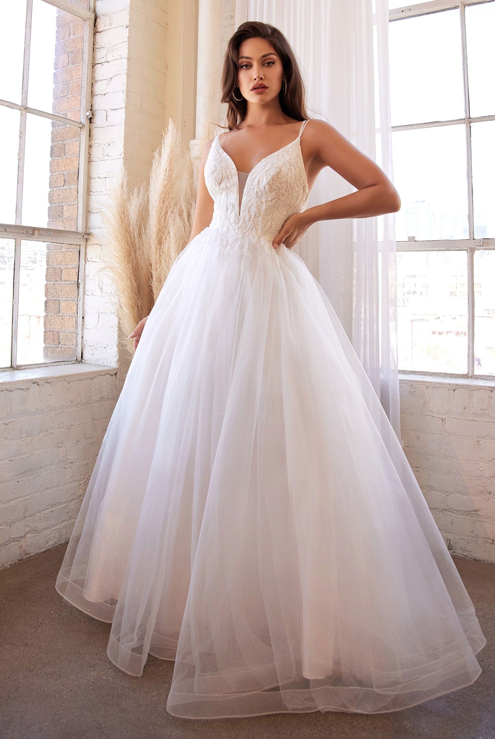 Unmatched factors of bridal wedding dresses deep v – neck and sleeveless neckline.