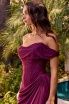 Exude refined sophistication in this stunning off-the-shoulder gown that celebrates understated luxury and flattering silhouettes. The gracefully draped neckline showcases your shoulders beautifully, while the expertly sculpted ruched bodice cinches at the waist to create an enviable, hourglass figure. Strategically gathered details at the hips transition seamlessly into an elegant floor-length skirt that moves with fluid grace. Ideal for galas, formal dinners, weddings, or any sophisticated evening event, this gown delivers timeless elegance with just enough modern edge to make you feel absolutely captivating and confident.