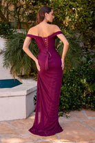Off The Shoulder Fashion Forward Mesh Gown w/ Structural Corset Bodice & Lace Up Back CDCD387