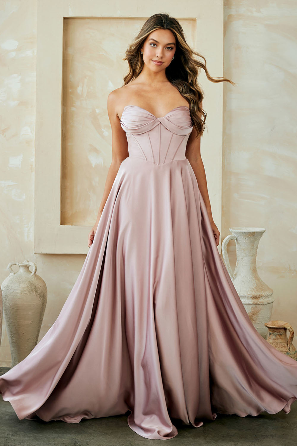 Elegant Solid Bridesmaid A-Line Dress w/ Sweetheart Neckline & Boned Bodice AC4053