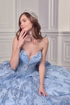 Strapless Sequins Embellished Quinceanera Gown w/ Layered Skirt & Corset Bodice CD15732