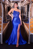 Red Carpet Inspired Satin Dress w/ Asymmetrical Neckline & Ruched Waistline CDCA114
