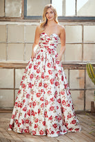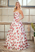 This strapless garden party dress combines romantic florals with refined elegance, featuring a sweetheart neckline and sleeveless design that feels both timeless and contemporary. The A-line silhouette flatters every figure while the beautiful floral print adds visual interest and botanical charm throughout. A secure lace-up back closure ensures a customized fit and contributes to the dress's vintage-inspired sophistication. Perfect for outdoor celebrations, garden weddings, and upscale daytime events, this long gown moves with graceful ease. Radiate understated luxury and timeless beauty at your next special occasion.