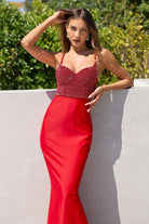 Mermaid Gown with Silver Sequin Bodice and Sweetheart Neckline T9002P