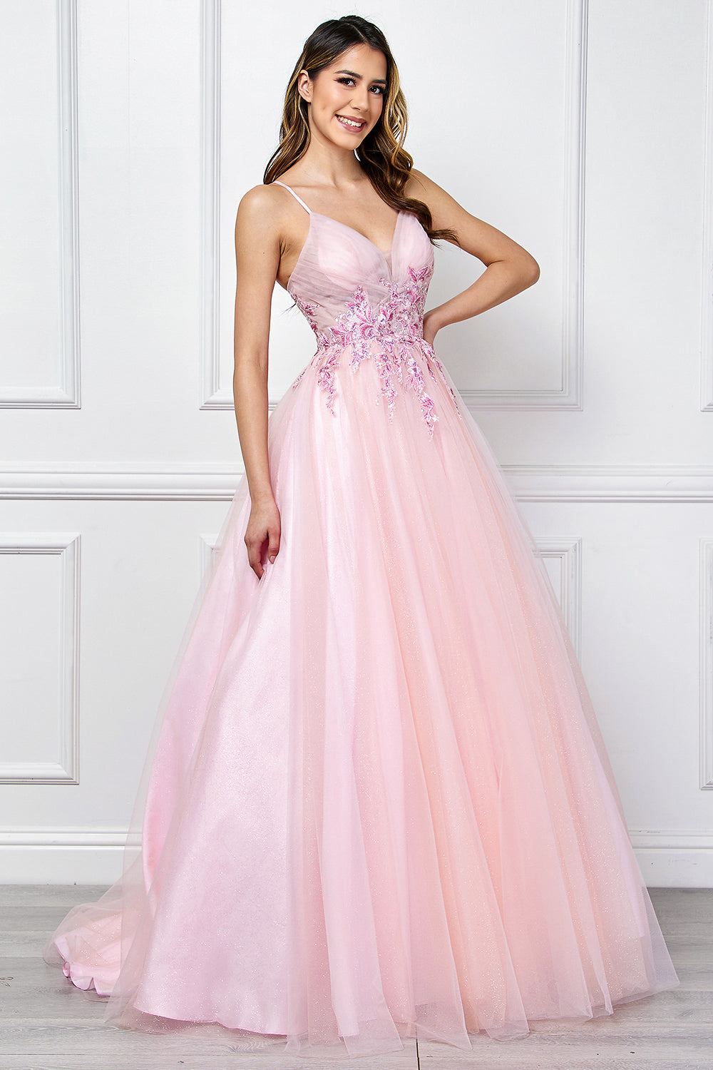 Details like backward shapes, ruching, and striped pattern dresses are expected to become more prominent. Stay one step ahead in fashion by providing customers with the most popular and leading trends, such as the Rhinestone Stretch Satin Gown.