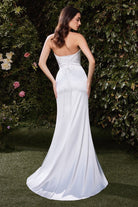 Satin Halter-Neck White Gown with Side Slit and Ruched Bodice CD7451W