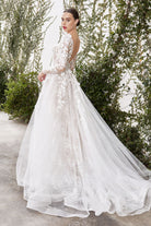 Be amazed by Yvaine Long Sleeve Wedding Dress CDA1067W's elegantly-crafted white florals. Unabashedly romantic, the intricate 3D floral vines adorn the sheer sleeves and A-line silhouette of the gown. A classic V-neckline trimmed in flower petals frames the face of the bride. Lined with a subtle nude hue, this breathtaking ensemble ensures a truly languid and enchanting appearance.