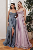 Glitter Shimmering Spaghetti Strap Cowl Neck Long Bridesmaid & Evening Dress
