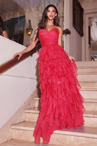 Purple, Black, Green, Red Strapless Layered Ruffle Tulle Gown CDCZ0027