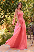 Minimalistic Strapless Bridesmaid Dress w/ Matching Scarf & Pleated Design CDCD395