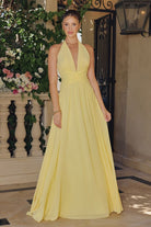 Sleeveless A-Line Bridesmaid Chiffon Gown w/ Halter Neckline & Ruched Waistline CDT715