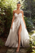 Penelope Blossom Floral Strapless Sheer Corset Bodice A-line Long Prom & Bridesmaid Dress CDA1089