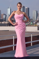 Strapless Bridesmaid Draped Chiffon Gown with Fitted Silhouette & Sweep Train CDT702
