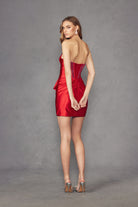 Strapless Mini Sheath Cocktail Dress w/ Front Bow & Crystals Embellished Bodice JT964A