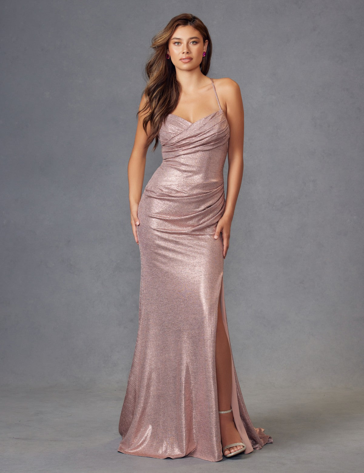 METALLIC PLEATED A-LINE GOWN CDCD802