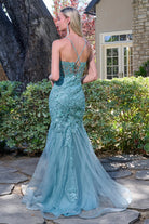 Adjustable spaghetti straps embellished v neckline corset bodice trumpet dress GLGL3692