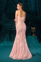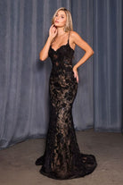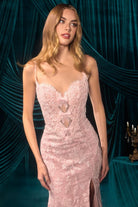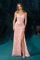 Romantic Floral Lace Embellished Prom Long Sheath Gown w/ Mini Front Bows CDA1499