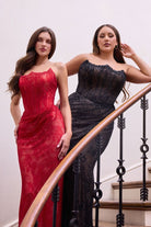 Floral Lace Embellished Maxi Night-Out Gown w/ Scoop Neckline & Structural Corset Bodice CDCB162C