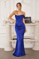 One Shoulder Evening Soft Satin Gown w/ Draped Waistline & Corset Bodice CDT727