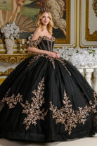 This daring ball gown commands attention with its dramatic off-shoulder tulle sleeves and a sweetheart neckline that flatters every curve. The bejeweled bodice sparkles with intricate appliques, embroidery, jewels, and sequins, catching the light with every movement. The corset back enhances your silhouette while adding an element of seductive allure. Flowing into a stunning tail-length skirt, the tulle fabric billows gracefully, making you feel like you're gliding on air. This gown isn’t just worn—it’s an experience, captivating and unforgettable at every angle.