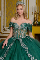 Glittery Long Tulle Ball Gown w/ Detachable Shoulder Straps & Sheer Boned Corset GLGL3636