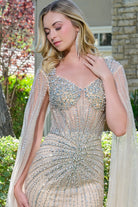 Stunning Rhinestones Embellished Maxi Pegeant Gown w/ Capes & Sheer Bodice GLGL3666