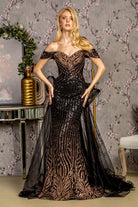 Metallic Sequin Mesh Mermaid w/ Detachable Waist Drape Long Prom Dress GLGL3496