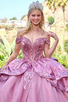 Become the vision of elegance in this show-stopping quinceañera gown that combines romance with undeniable glamour. Off-shoulder long sleeves frame a plunging V-neckline corset bodice adorned with intricate beads, jewels, and sequins that sparkle with every movement. The fitted bodice features a flattering Basque waistline that transitions into a dramatic layered satin overskirt with petal-like folds, revealing a luminous glitter underlayer beneath. The skirt extends into a graceful train that commands attention as you make your entrance. Complete with a detachable satin bow at the back, this gown ensures you'll feel like royalty while creating memories that last a lifetime.