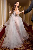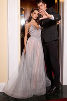 Radiate elegance in this enchanting A-line gown, featuring a deep V-neckline and delicate thin straps adorned with beaded pearl details. The layered tulle skirt flows gracefully from the princess waistline, complementing the intricately embellished bodice. With a lace-up corset back for a perfect fit, this dress is an exquisite choice for prom or any formal occasion. Key Features: Silhouette: A-line Design: Deep V-neckline, thin straps & beaded pearl details Fabric & Material: Layered tulle & embellished bodice Fit Detail: Fitted bodice with a princess waistline & open lace-up corset back Occasions: Prom or formal occasion Sizing: Available in sizes 0 - 18