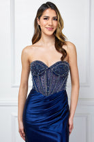 Rhinestones Embellihsed Maxi Sophisticated Gown w/ Leg Slit & Gathered Waistline AC4049