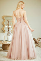 Exude timeless sophistication in this floor-length A-line gown, designed with a romantic sweetheart neckline and strapless silhouette. The structured bodice features strategic pleating and internal boning that sculpts and supports your natural curves with confidence. Graceful tiered skirt layers flow effortlessly with every step, while the adjustable lace-up back provides a personalized fit and elegant finishing touch. An impeccable choice for prom, black-tie events, and memorable formal occasions.