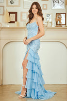 Romantic Formal Floral Long Gown w/ Ruffled Skirt & Open Lace Up Back AC7085