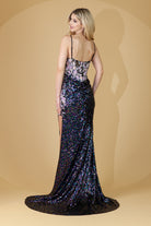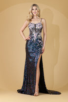 Embroidered Sequin Side Slit Spaghetti Straps Long Prom Dress ACTM1020