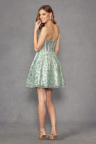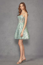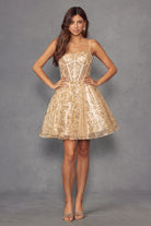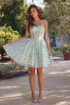 Short Sequins Embellished Cocktail Dress w/ Boned Sweetheart Neckline & Flare Skirt JT977U