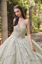 Expertly crafted with 100% polyester, this breathtaking Embroidered Lace Bodice Sweetheart Long Quinceanera Dress gives you both comfort and style. Available in two stunning colors - Rose Gold and Sage Green - this dress features an open zipper back and sleeveless design with delicate spaghetti straps.
