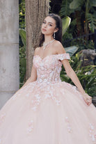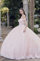 Off Shoulder Embroidered Lace Open Corset Back Long Quinceanera Dress